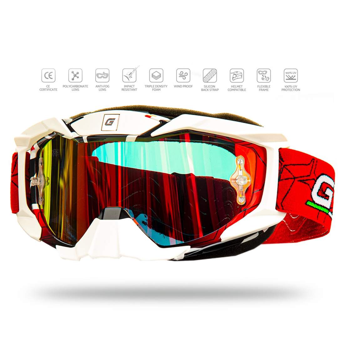 Кроссовые очки с защитой носа – обязательные атрибуты экипировки для мотокросса и эндуро. Эластичный корпус кроссовых очков GTX подходит почти на все виды шлемов. А трехслойная флисовая оправа обеспечивает отличное отведение лишней влаги от глаз и препятствует запотеванию. Ремень мотоциклетных очков обладает прорезиненными демпферами, которые позволяют избежать ее соскальзывания. По всему периметру расположено 18 вентиляционных отверстий, которые закрыты поролоном. Цветная линза изготовлена из поликарбоната, защищающая глаза от УФ лучей. Так же мотоочки имеют выносные подвижные аутригеры. Благодаря им данная модель будет отлично садиться в шлем и более плотно прилегать к лицу. Так же кроссовые мото очки подойдут для страйкбола и пейнтбола, катания на снегоходе, сноуборде, лыжах, квадроцикле и пит байке. Мотоочки подходят, как для детей, так и взрослых, так как регулируются и надежно фиксируются по размеру. Очки мужские эндуро обеспечат Вам дополнительную защиту от ветра, пыли, грязи, снега и других неблагоприятных факторов окружающей среды. Защитные очки будут приятным подарком для любителей экстремального спорта.
