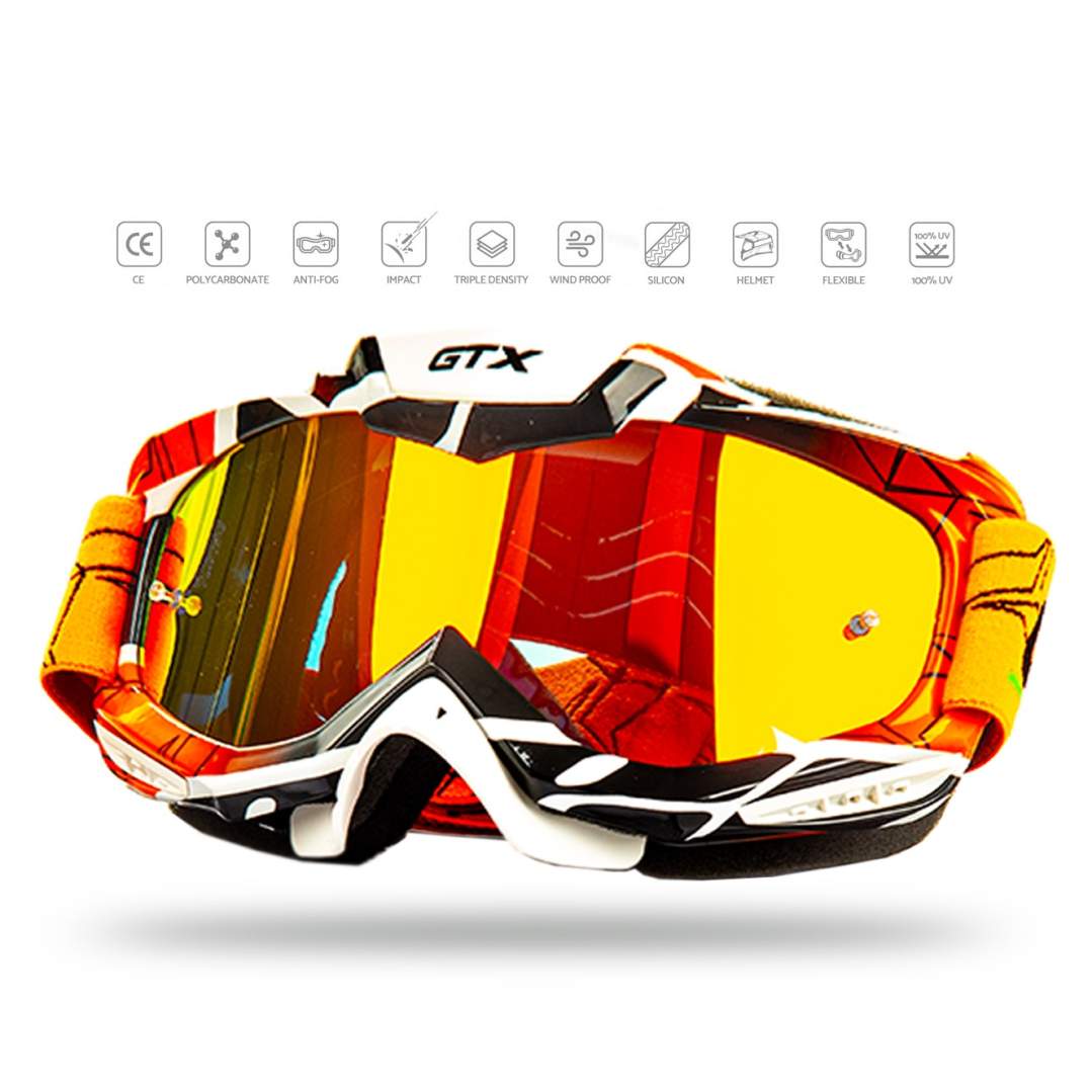 Кроссовые очки с защитой носа – обязательные атрибуты экипировки для мотокросса и эндуро. Эластичный корпус кроссовых очков GTX подходит почти на все виды шлемов. А трехслойная флисовая оправа обеспечивает отличное отведение лишней влаги от глаз и препятствует запотеванию. Ремень мотоциклетных очков обладает прорезиненными демпферами, которые позволяют избежать ее соскальзывания. По всему периметру расположено 18 вентиляционных отверстий, которые закрыты поролоном. Цветная линза изготовлена из поликарбоната, защищающая глаза от УФ лучей. Так же мотоочки имеют выносные подвижные аутригеры. Благодаря им данная модель будет отлично садиться в шлем и более плотно прилегать к лицу. Так же кроссовые мото очки подойдут для страйкбола и пейнтбола, катания на снегоходе, сноуборде, лыжах, квадроцикле и пит байке. Мотоочки подходят, как для детей, так и взрослых, так как регулируются и надежно фиксируются по размеру. Очки мужские эндуро обеспечат Вам дополнительную защиту от ветра, пыли, грязи, снега и других неблагоприятных факторов окружающей среды. Защитные очки будут приятным подарком для любителей экстремального спорта.