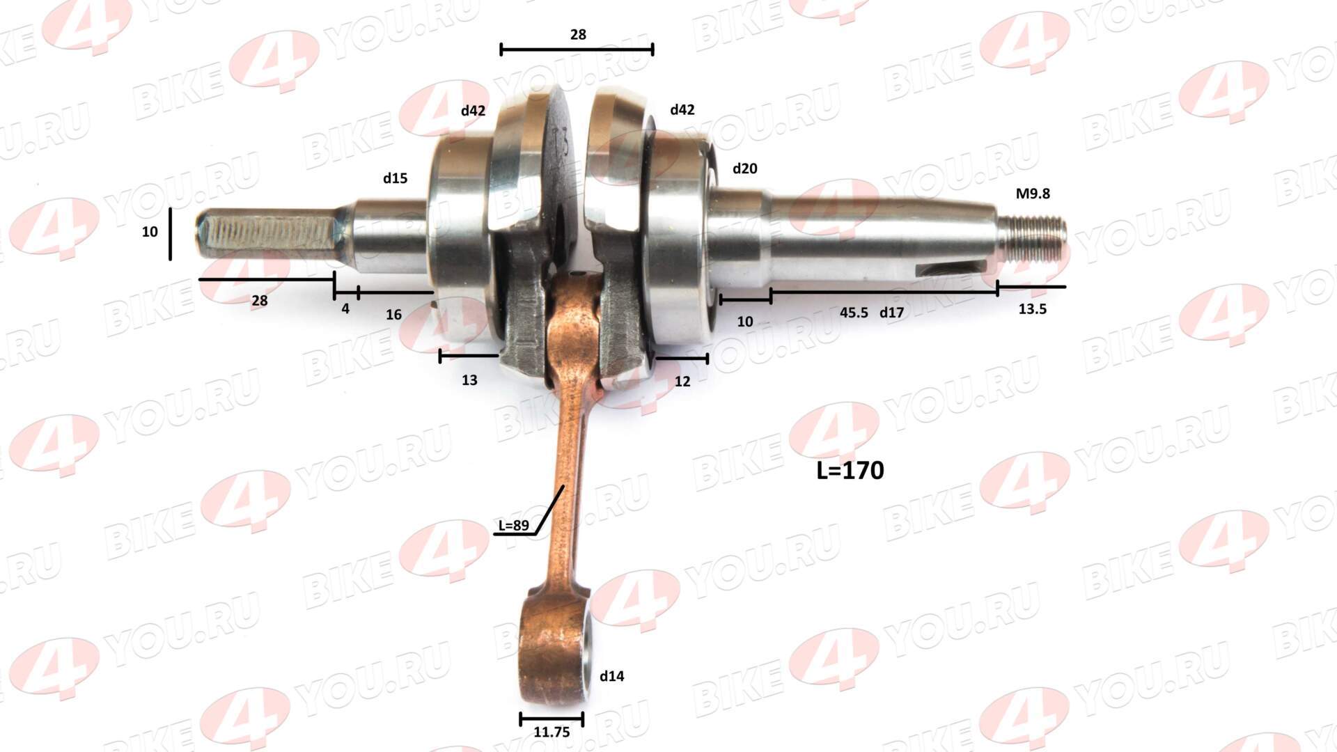 Конструктивно коленвал имеет одноколенную конфигурацию с противовесами для балансировки, что минимизирует вибрации в двухтактном цикле. Основные шейки (коренные и шатунная) обработаны с высокой точностью, с диаметром коренных шеек примерно 25-30 мм (в зависимости от конкретной версии мотора), а шатунной — около 20-25 мм. Длина вала адаптирована под компактный блок цилиндров, составляя порядка 200-250 мм, с интегрированными масляными каналами для смазки в смеси с топливом, типичной для двухтактных двигателей.