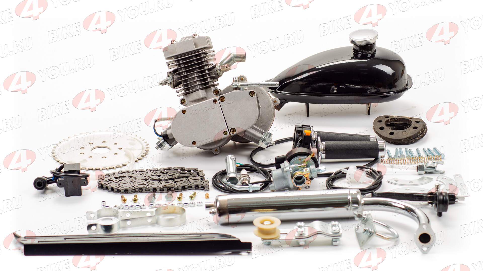 Двигатель 50см3 2-х тактный устанавливается на велосипед или на велосипедную раму .