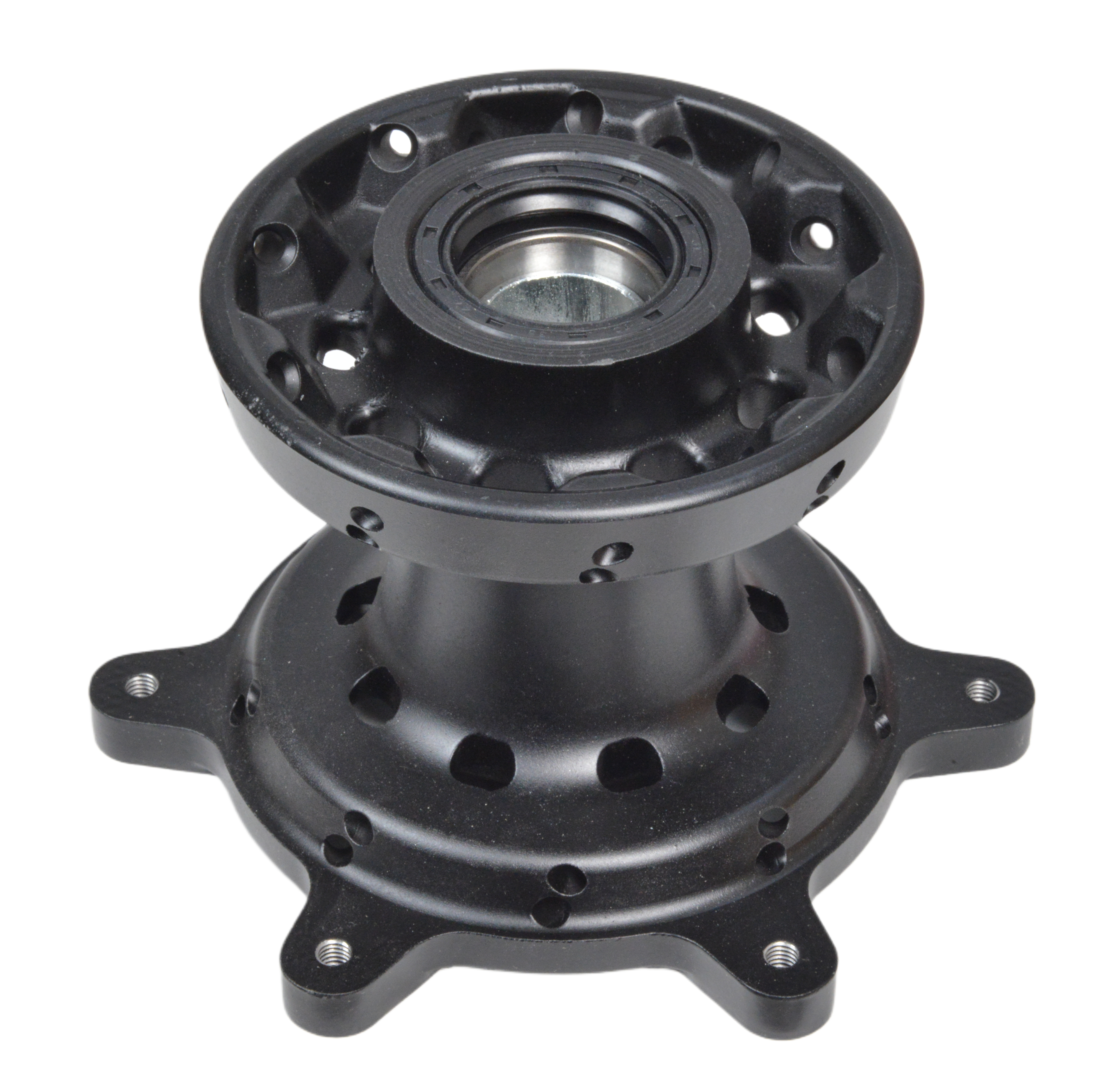 Размеры и геометрия: Диаметр центрального отверстия под ось — стандартный 20–25 мм (совместим с большинством осей для FX-серии). Фланец для спиц имеет 36 отверстий (типичная конфигурация для кроссовых колес диаметром 21 дюйм). Расстояние между фланцами адаптировано под ширину вилки мотоцикла, обеспечивая точную центровку колеса. Диаметр фланца для тормозного диска — около 220–270 мм, с креплением на 6 болтах (M6–M8).