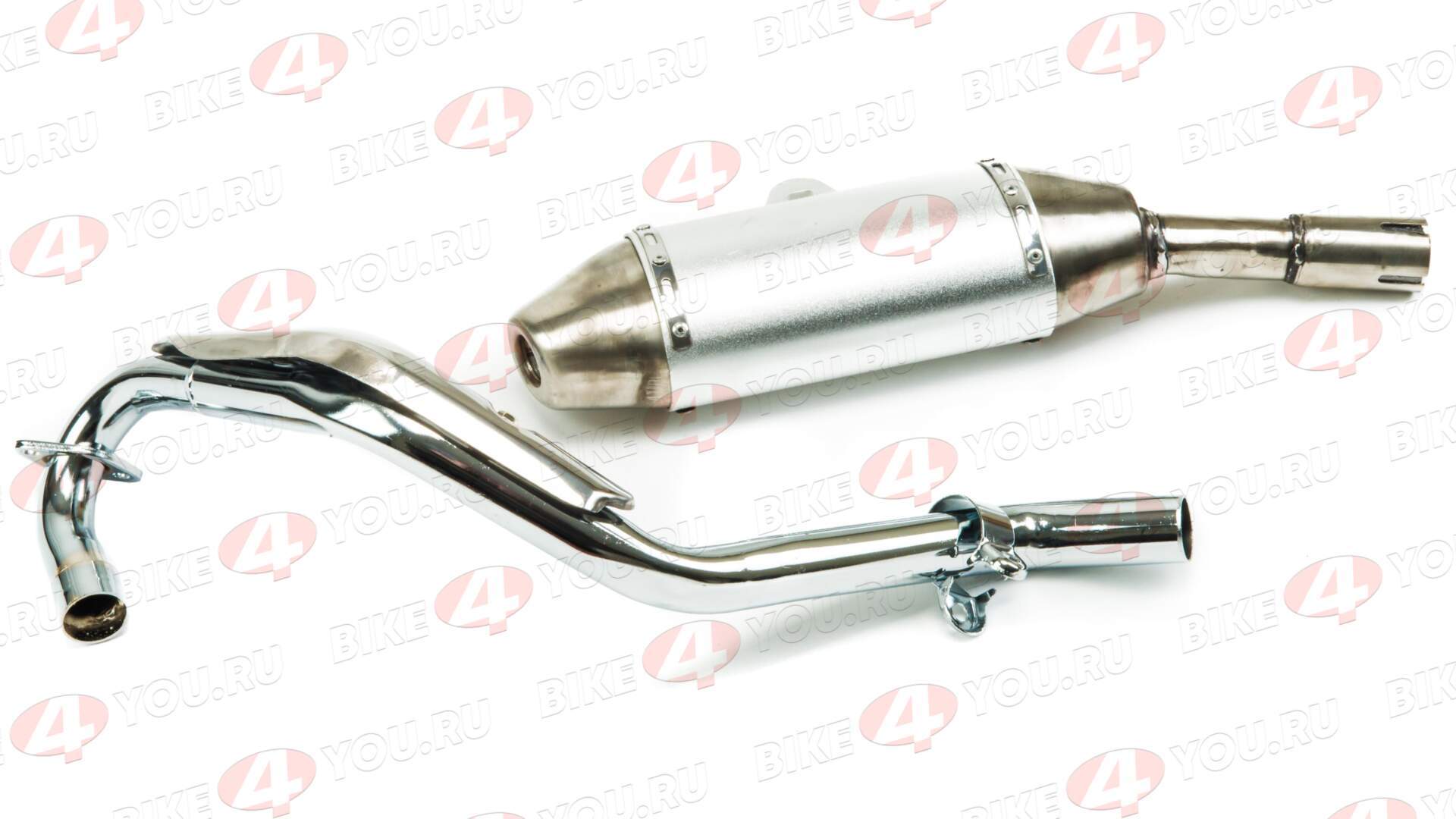 Описание выхлопной системы по фото эта выхлопная система для мотоцикла представляет собой комплект из двух основных частей: приемной трубы (коллектора) и глушителя. Она выглядит как высококачественный aftermarket-аксессуар, предназначенный для улучшения производительности, снижения шума и эстетики мототехники, такой как кроссовые или эндуро мотоциклы. Приемная труба (коллектор): Материал: Хромированная сталь с блестящим полированным покрытием, устойчивая к коррозии и высоким температурам. Форма: Изогнутая S-образная конструкция с фланцем на одном конце для крепления к двигателю и прямым соединением на другом для стыковки с глушителем. Длина: Примерно 30-40 см (визуальная оценка по фото). Дополнительные элементы: Крепежный кронштейн для фиксации на раме мотоцикла, что обеспечивает надежную установку без вибраций. Материал: Алюминиевый корпус с серебристым анодированным покрытием, комбинированный со стальными элементами для прочности. Форма: Цилиндрическая, сужающаяся к выходу, с перфорированным внутренним дизайном (предположительно для поглощения звука). Входной патрубок для соединения с коллектором, защитный кожух на корпусе для предотвращения ожогов, и выходное отверстие с небольшим диффузором для оптимизации потока газов. Глушитель имеет гладкую, аэродинамичную форму, что может способствовать лучшему отводу выхлопных газов и небольшому приросту мощности. Общие характеристики системы: Предназначена для 2-тактных или 4-тактных двигателей мотоциклов (например, моделей типа Yamaha TTR или аналогичных off-road байков).Преимущества: Снижает уровень шума, улучшает эмиссию газов, добавляет стильный вид благодаря хромированным и серебристым элементам. Может быть совместима с тюнингом для повышения производительности. Установка: Простая, с использованием стандартных креплений; рекомендуется профессиональный монтаж для обеспечения герметичности. Эта система идеально подойдет для энтузиастов мотоспорта, желающих обновить стандартный выхлоп на более эффективный и визуально привлекательный вариант.