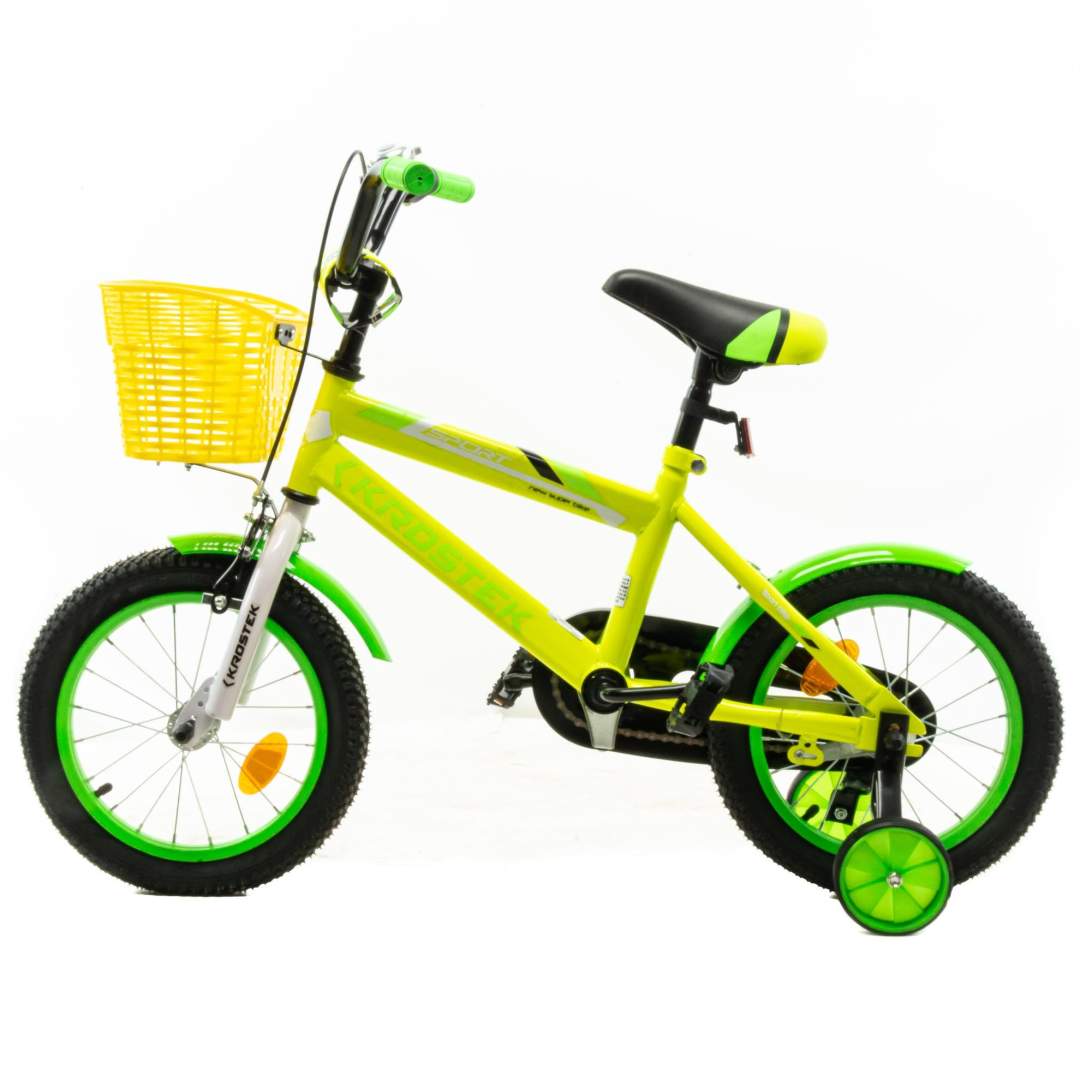 Велосипед 14" KROSTEK RALLY (желтый) - это велосипед с легкой и удобной конструкцией для ребят 3-7 лет. Велосипед полностью укомплектован и обязательно понравится маленькому велосипедисту: надежный и красивый багажник для перевозки всяких нужностей, защита цепи (оберегающая нижнюю часть одежды от попадания в механизм) регулируемые сидение и руль, которые можно адаптировать под рост ребенка.