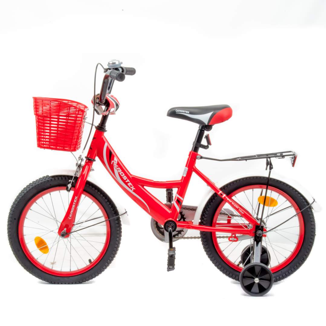 Велосипед 16" KROSTEK WAKE (красный)- это велосипед с легкой и удобной конструкцией для ребят 5-9 лет. Велосипед полностью укомплектован и обязательно понравится маленькому велосипедисту: надежный и красивый багажник для перевозки всяких нужностей, защита цепи (оберегающая нижнюю часть одежды от попадания в механизм) регулируемые сидение и руль, которые можно адаптировать под рост ребенка.