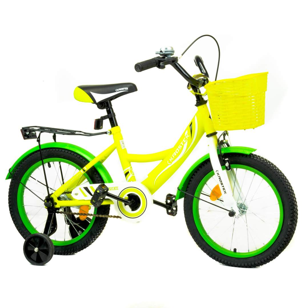 Велосипед 16" KROSTEK WAKE (желтый)- это велосипед с легкой и удобной конструкцией для ребят 5-9 лет. Велосипед полностью укомплектован и обязательно понравится маленькому велосипедисту: надежный и красивый багажник для перевозки всяких нужностей, защита цепи (оберегающая нижнюю часть одежды от попадания в механизм) регулируемые сидение и руль, которые можно адаптировать под рост ребенка.