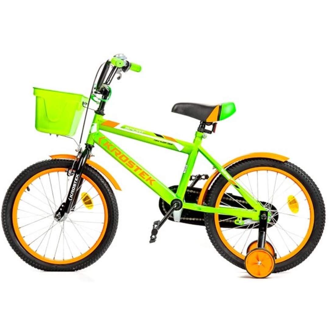 Велосипед 18" KROSTEK RALLY (зеленый)- это велосипед с легкой и удобной конструкцией для ребят 5-9 лет. Велосипед полностью укомплектован и обязательно понравится маленькому велосипедисту: надежный и красивый багажник для перевозки всяких нужностей, защита цепи (оберегающая нижнюю часть одежды от попадания в механизм) регулируемые сидение и руль, которые можно адаптировать под рост ребенка.