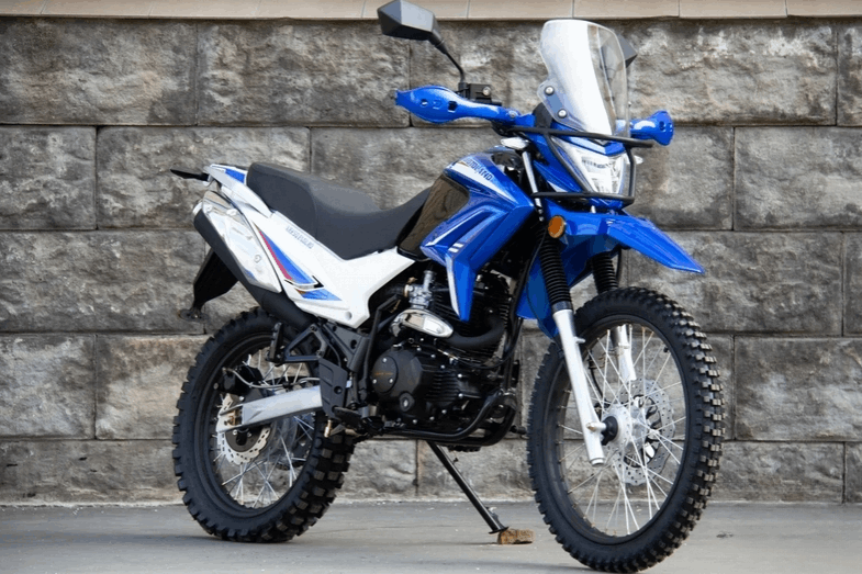 Motoland XR250 ENDURO- надежный и универсальный мотоцикл для езды как по бездорожью, так и по городским улицам. Особенностью эндуро является профиль резины. Он обеспечивает хорошую сцепление с грунтом и устойчивость на неровных дорогах, что позволит вам исследовать труднодоступные места.